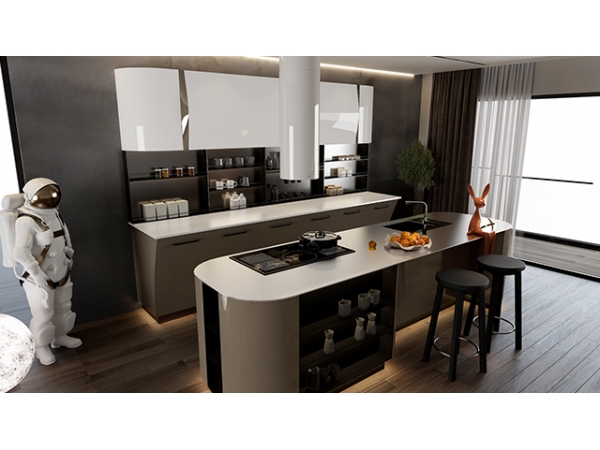 +health的组合,宴会+健康璀璨造诣。尊贵、古典、奢华集于一身,精致的设计。柜体的奢华大气,门板的典雅华丽。精致的岛台耀眼夺目,台面一体衔接银光闪闪,无不彰示私宴厨房经典奢华的气质。